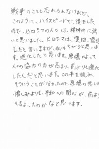 「あきらめずに広島の復興を願って頑張った人はすごいと思います。